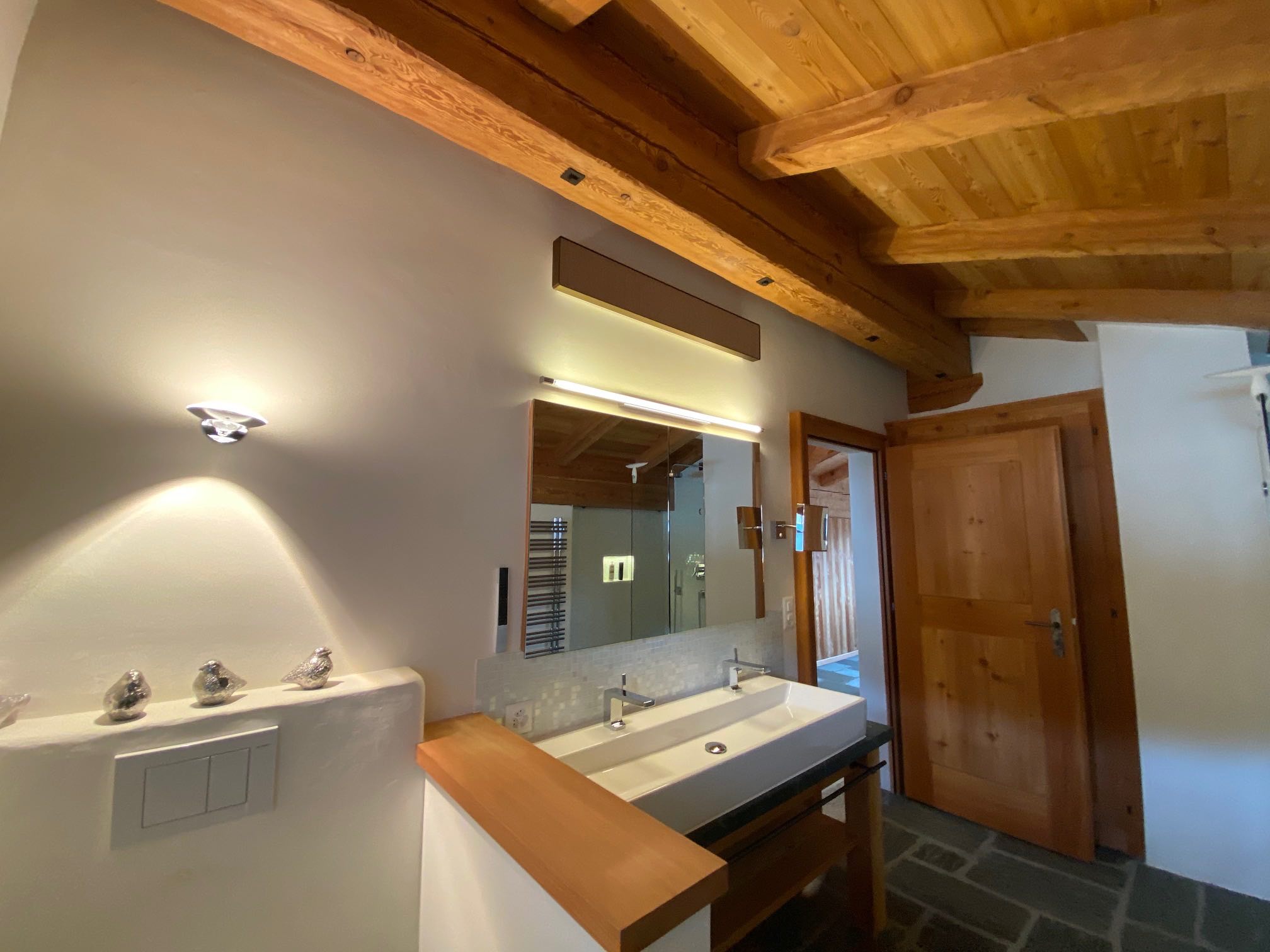 Bei der Renovation einer Ferienwohnung durften die Räumlichkeiten mit einer Audio- und Videoinstallation von Bang & Olufsen ausgestattet werden. Auf Knopfdruck oder per App-Bedienung können die Musiksysteme und die Fernsehgeräte gestartet werden. Die zwei Beosound Stage mit einem Alurahmen in der Farbe Bronze betten sich im Bad und auf der Terrasse perfekt in die warme Holzstruktur ein. Für ein flächendeckendes WLAN wurden mehrere Access-Point installiert und konfiguriert.