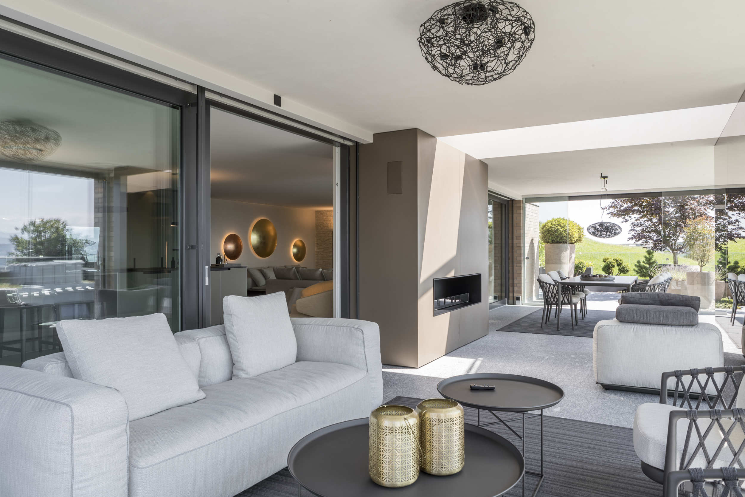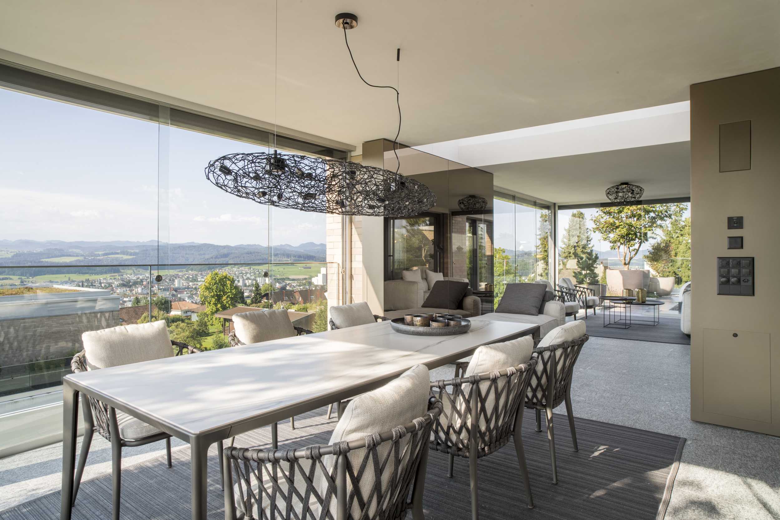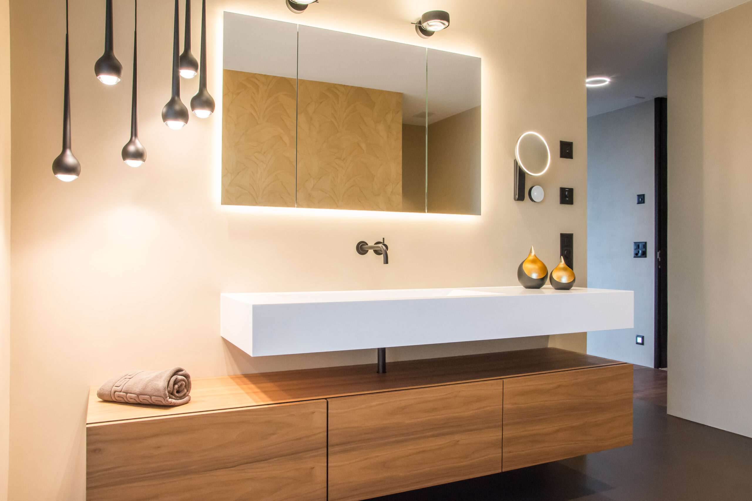Bei einem Wohnungsumbau durfte das komplette Audio- und Videosystem erneuert und erweitert werden. Als Fernsehlösungen für die unterschiedlichen Zimmer wurde der deutsche Hersteller Metz gewählt. Im Wohn- und Essbereich sorgen die zwei Beolab 18 Lautsprecher von Bang & Olufsen für einen erstklassigen Musikgenuss. Auf der Terrasse, in der Bibliothek und in den Nasszellen wird auf Knopfdruck die Musik abgespielt. Im Badezimmer und Gäste-WC wurden unsichtbare Unterputz-Lautsprecher eingebaut. Wird das Licht im Gäste-WC eingeschaltet, erklingt automatisch Hintergrundmusik.